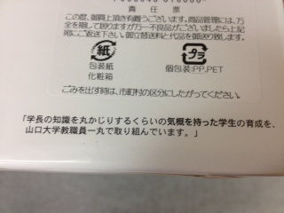このお土産を持ってきてただいた方の娘さんが山口大学に通われているそうです。