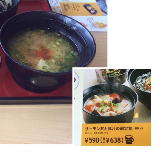 朝定食のメニュー表にある豚汁の写真と実際のボリュームの違いにもがっかりです・・・・・