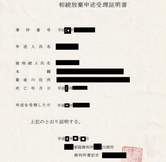 これが相続放棄が受理された証明書。