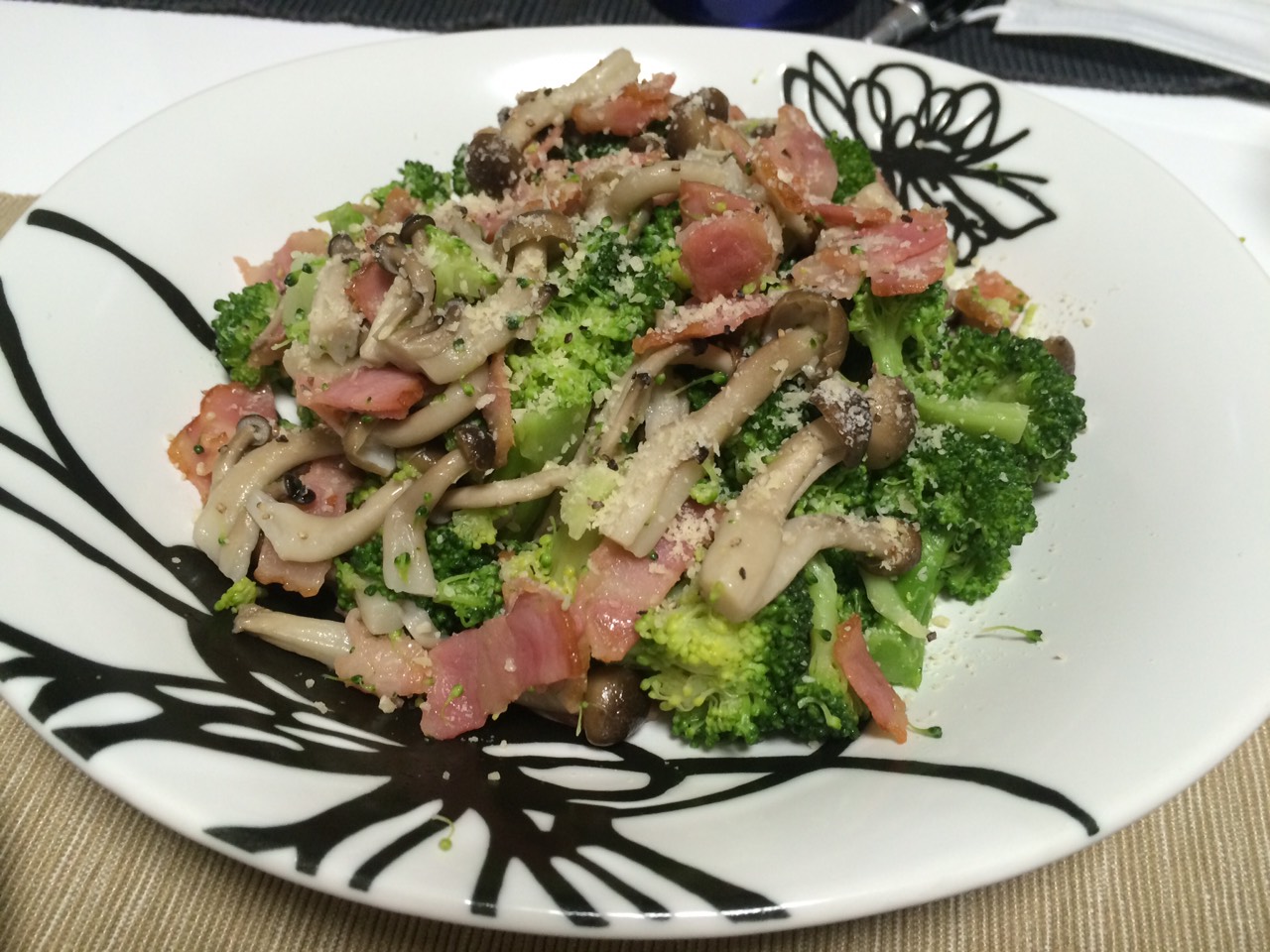 (ブロッコリーときのことベーコンのサラダ)