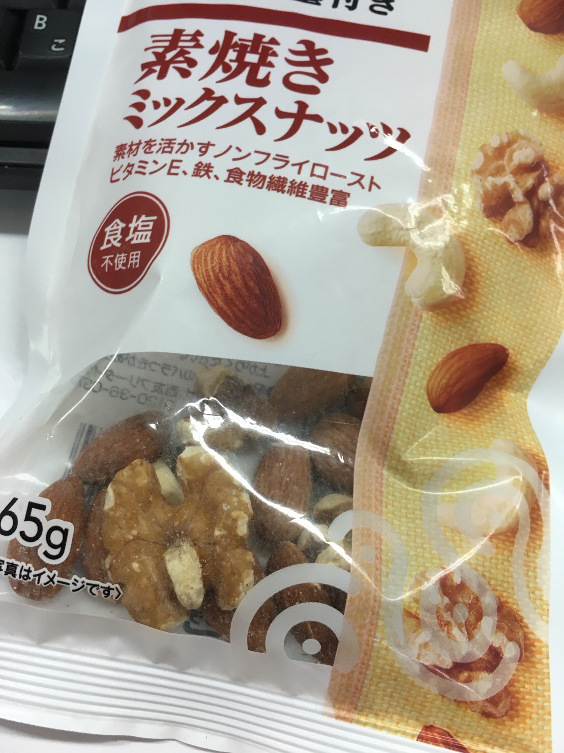 代表の受け売りで、お昼は鶏むね肉とサラダ、おやつはミックスナッツ。