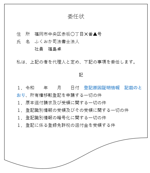 「登記原因証明情報に書いてる内容について委任するよ!詳細はそっちを見てね!」