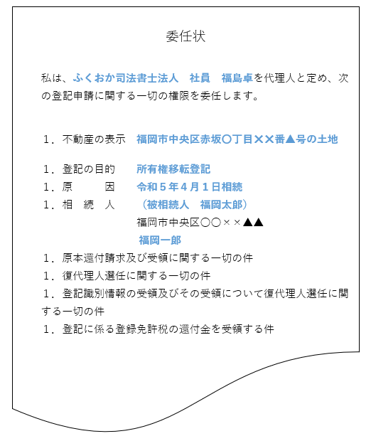 何らかの事情で委任したふくおか司法書士法人が別の人に手続きを委任する場合に、