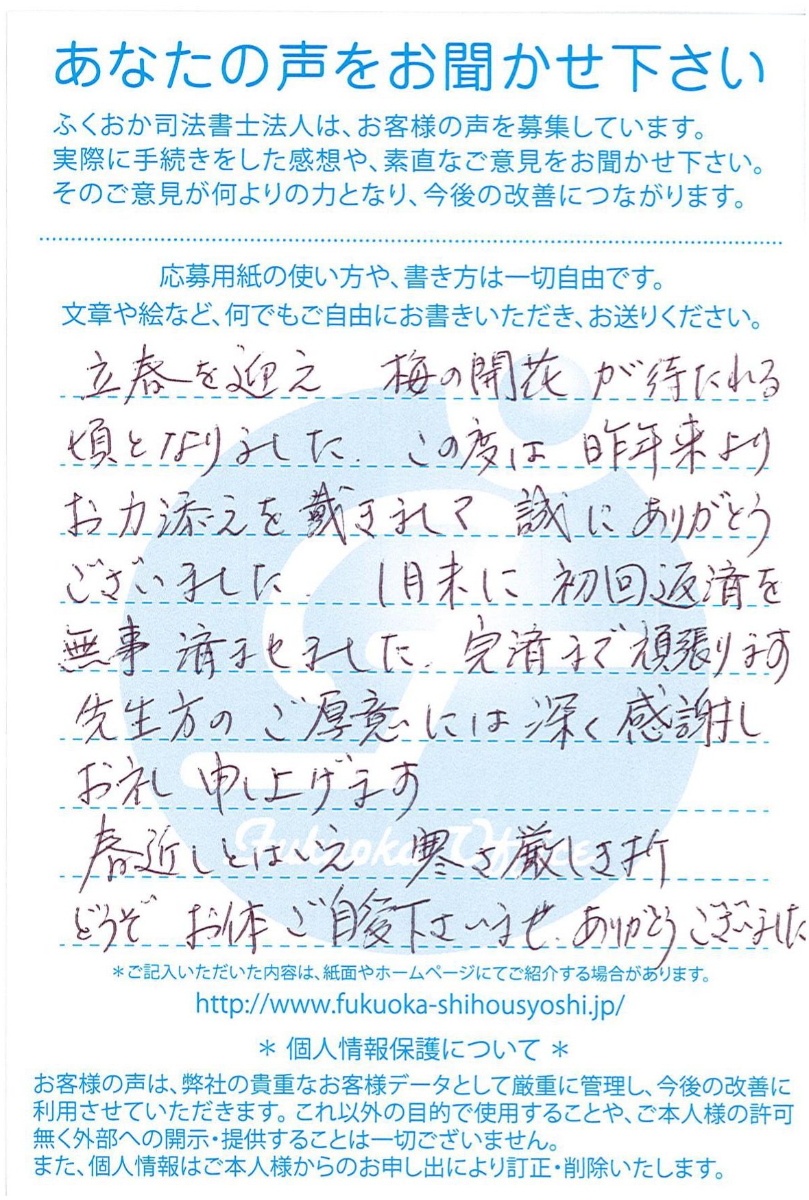 初回のご返済を終えられたとのことで、お便りをいただきました。
