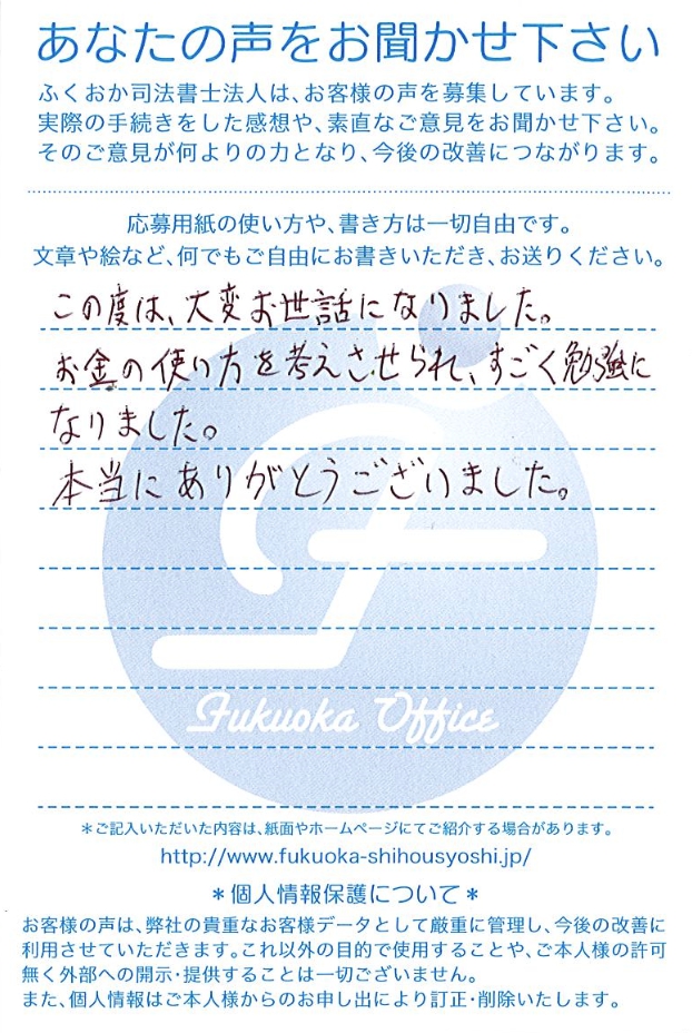 お金の使い方を改めて考えるきっかけになったとの嬉しいお声をいただきました。