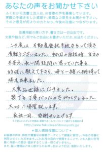 この度は、ふくおか司法書士法人にご依頼いただき、