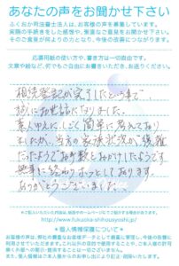 ご家族の状況も踏まえた説明が心強かったとのお言葉をいただき、